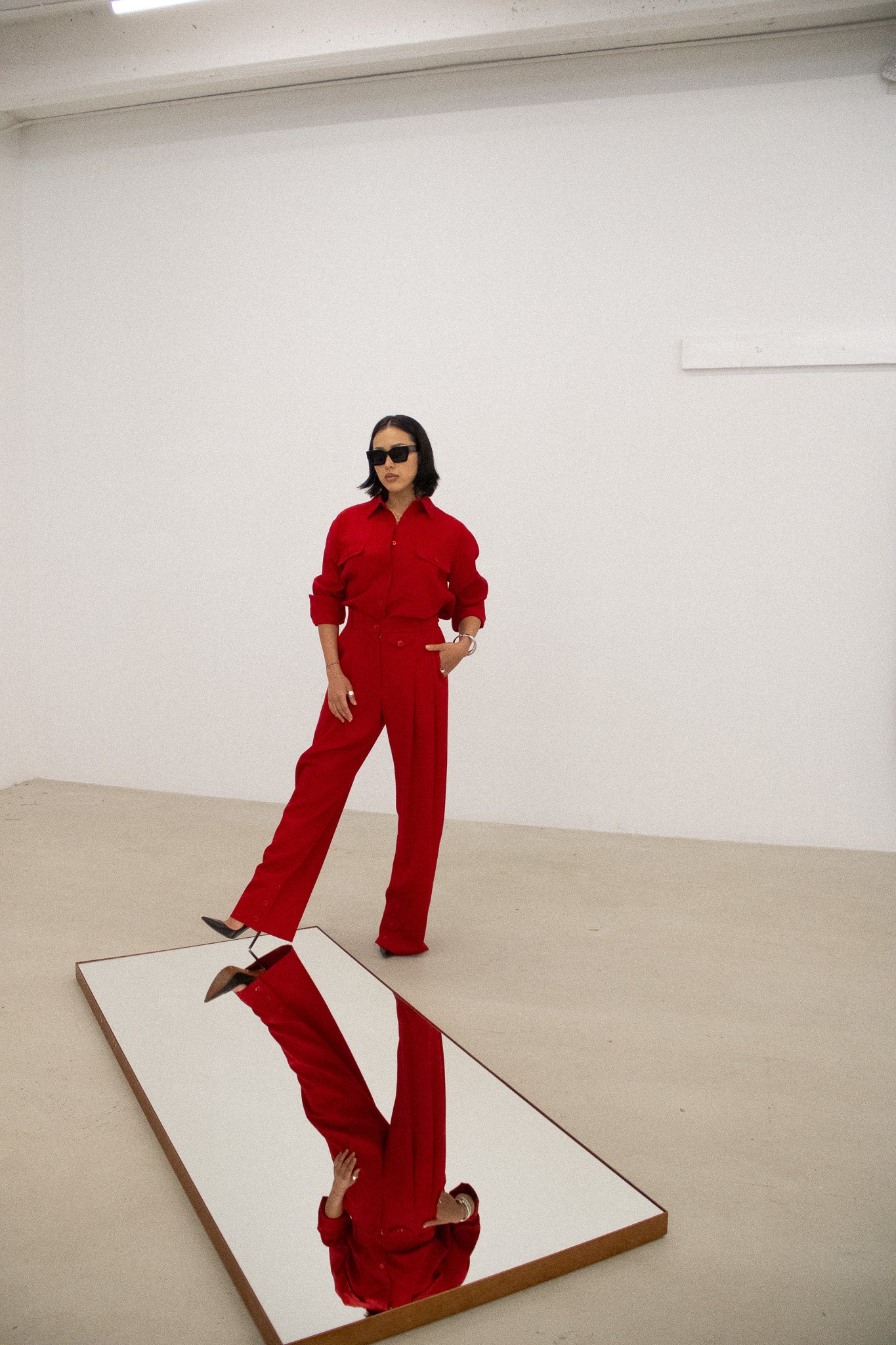 Crafted from luxurious Italian cashmere wool, these trousers feature pleated front detailing, a pressed crease, and buttoned cuffs, delivering a refined yet approachable elegance. The silhouette is designed for versatility, offering a fit that can be worn high-rise or regular, depending on preference.