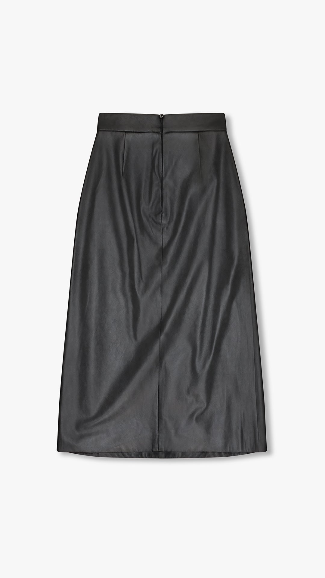 Cut from supple 100% Italian lambskin and crafted in Los Angeles, the skirt’s architectural silhouette follows the body with precision while a back pleat introduces subtle movement. The natural sheen of the leather adds quiet depth, balancing strength and sensuality.