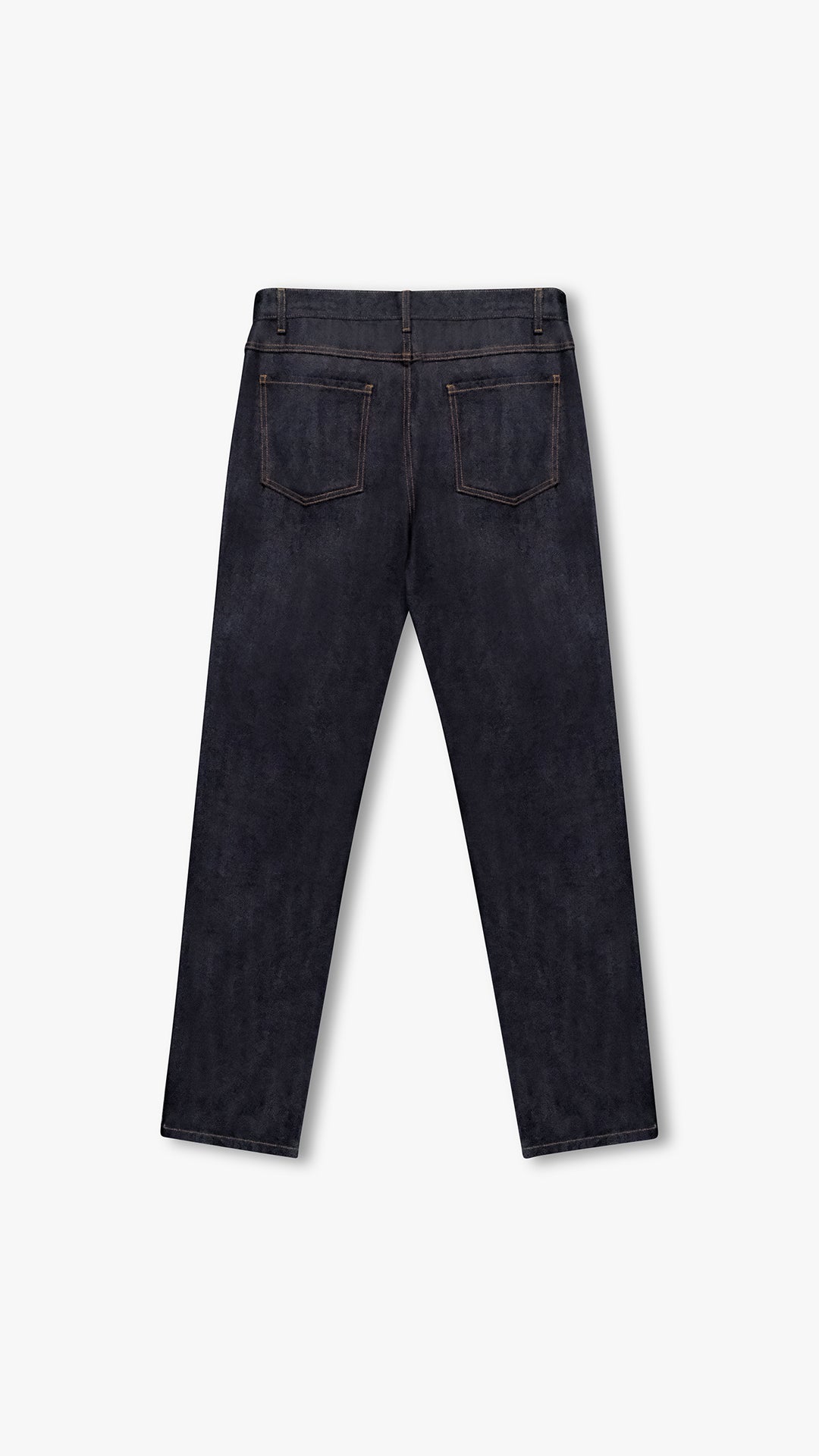 The silhouette remains iconic—loose yet intentional, with a button fly, Gabriel Salcedo-embossed hardware, and cuffed hems that echo the discipline of tailoring. Over time, the denim softens and ages uniquely, carrying the narrative of its wearer.