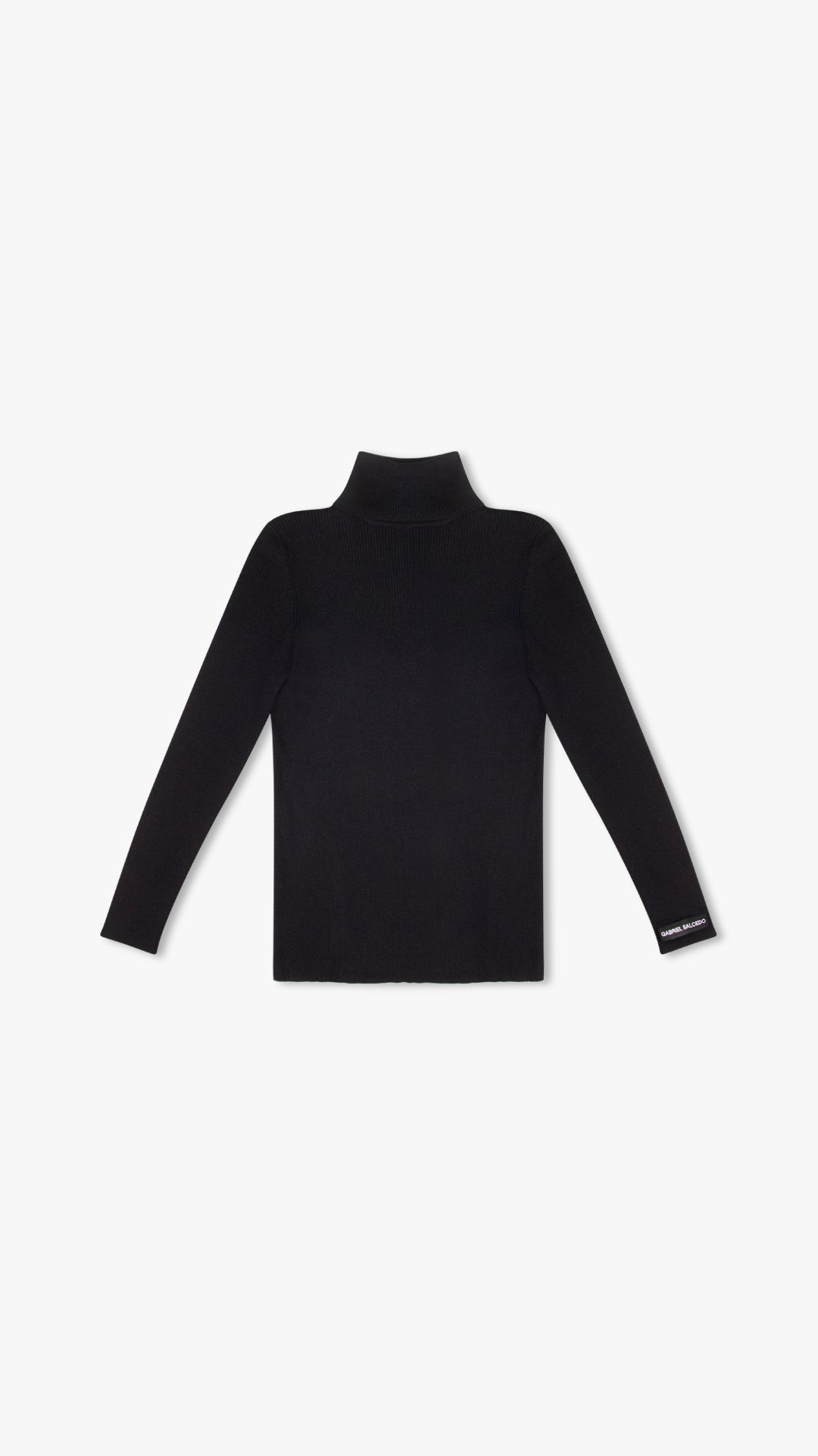 Crafted from 100% wool, this Classic Ribbed Turtleneck Sweater from the Gloomy Mornings collection is designed to seamlessly transition through every layer of your day. Featuring the signature Gabriel Salcedo label on the right arm, this piece embodies understated sophistication.