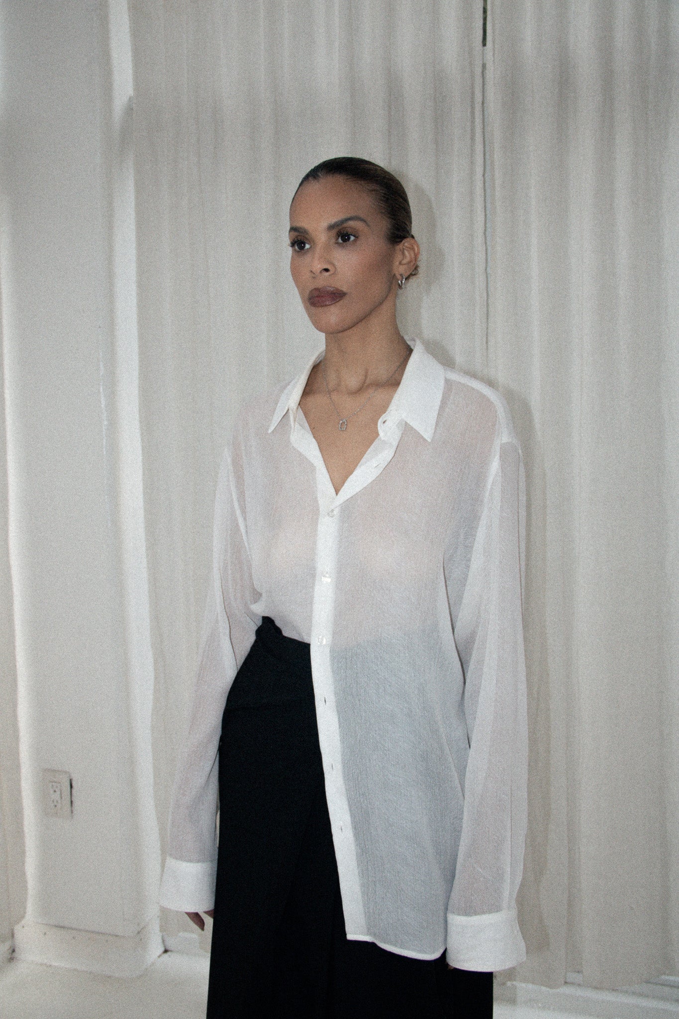SHEER LONG SLEEVE BUTTON UP SHIRT